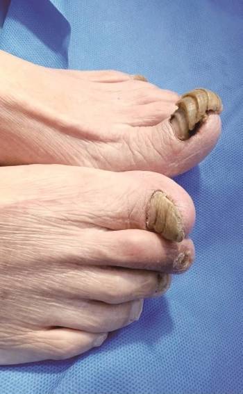 台海网1月26日讯(记者 林少蓉 通讯员 张舒姗 陈冰琳) 近日,厦门大学附属中山医院接诊了一位特殊的老人。因长期未修剪脚趾甲,年逾七旬的徐大爷双脚趾甲异常增厚变形,状似“羊角”,最终不得不接受拔甲手术。该院皮肤科医生提醒,指甲护理是日常健康管理的重要一环,不当处理或疏忽可能导致严重后果。