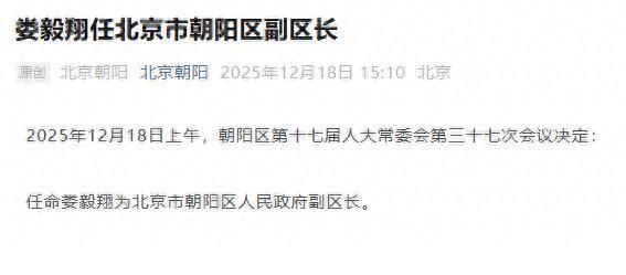 据“北京朝阳”微信公众号消息,2025年12月18日上午,朝阳区第十七届人大常委会第三十七次会议决定: